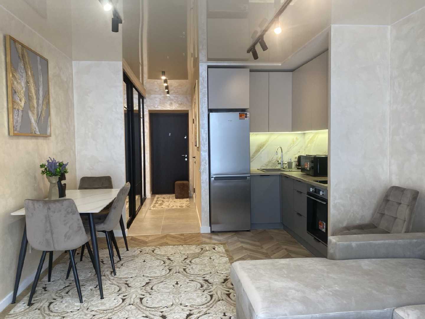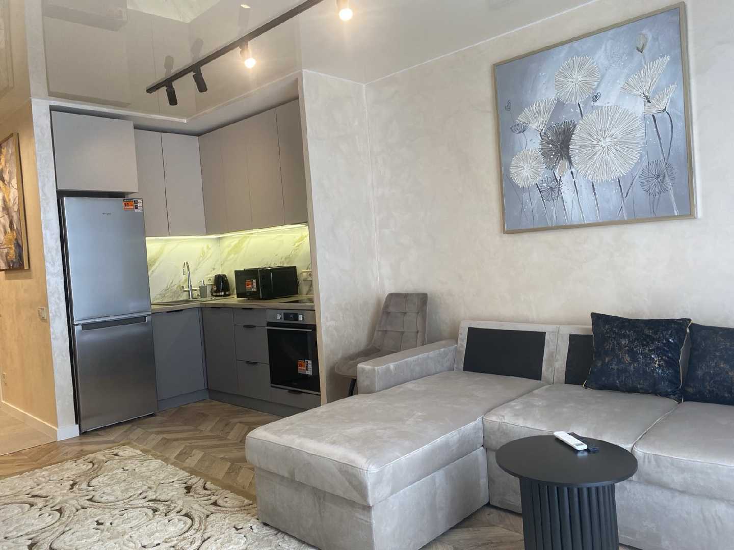 Оренда квартири-студії в ЖК Ріел Сіті вул. Рудненська. У квартирі є великий розкладний диван, смарт ТВ, кондиціонер, посудомийна машина, холодильник, індукційна плита, духова шафа, чайник та мікрохвильова піч. В прихожій є велика шафа купе. Санвузол - суміжний: душ. Опалення у квартирі будинкове, підігрів води за допомогою бойлера, є підігрів підлоги. Розглядаються порядні орендарі на довгий термін. Чемні котики до обговорення Ціна 16000 + КП.