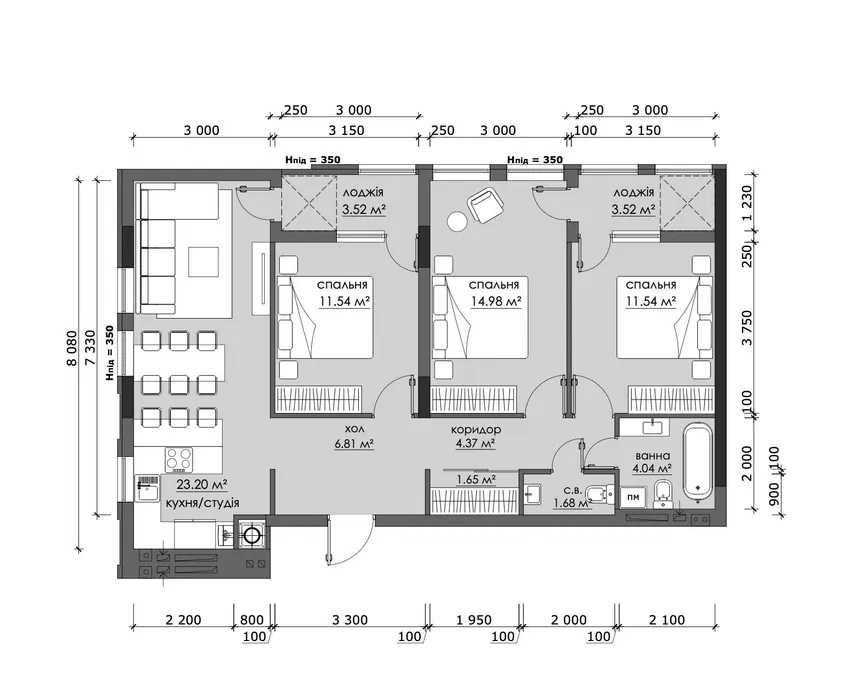 - 3 кімнат