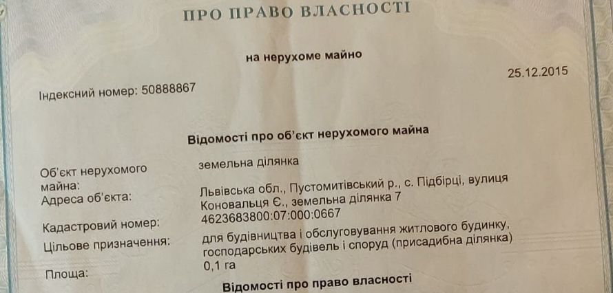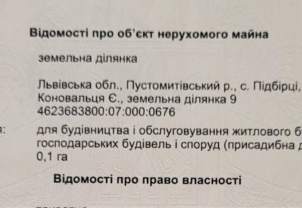 Продаж земельної ділянки с. Підбірці
