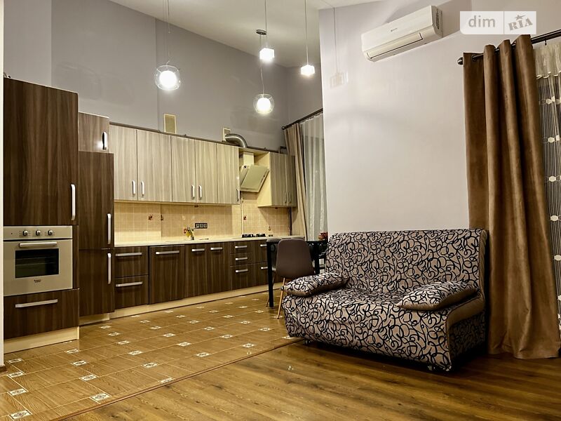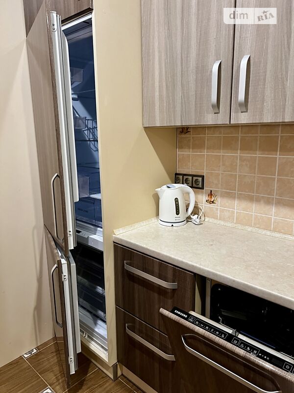 Сучасна квартира-студія у новобудові. Гарний вигляд із вікна. Високі стелі. Облаштована спальня 6 м2 (закривається розсувними дверима) Свій газовий котел, тепла підлога, кондиціонер. Ремонт та меблі нові, зроблені на замовлення. Вбудована техніка (пралка, духова шафа, холодильник) нова, не користована. Ніхто не жив з часів здачі будинку та ремонту. До зупинки маршрутного таксі №15 та №44 - 150 м. До автостоянки - 200-300 м, видно з вікна. Будинок із підземним та наземним паркінгом, відео наглядом та сучасним фільтром для води, завдяки якому в квартирі питна вода.