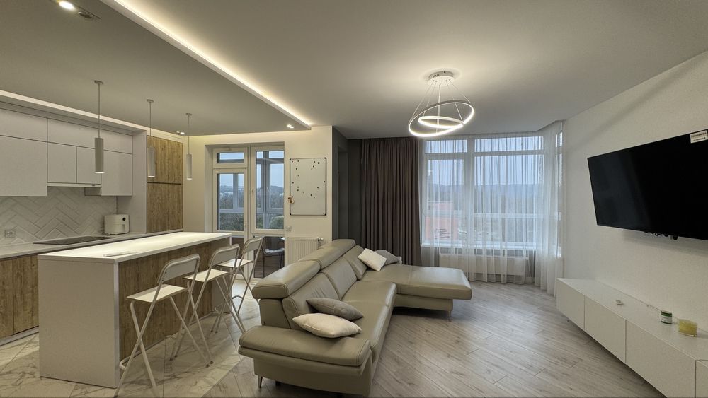 Оренда трикімнатної квартири з балконом та невеликою відкритою терасою в Шевченківському районі міста Львова, вулиця Під Голоском. Загальна площа квартири 90 кв.м., складається із двох ізольованих спалень, великої кухні-студії з вітальнею, коридору, двох санвузлів (в одному душ, іншому ванна). У квартирі зроблено сучасний ремонт, присутні всі меблі (за бажанням орендаря можливо дообладнати додатковими меблями) та побутова техніка (2 телевізори, пральна та посудомийна машини, індукційна варильна поверхня, електрична духова шафа, мікрохвильова піч, кавомашина та ін.). У квартирі є два альтернативні джерела опалення та обігріву води: електричний підігрів підлоги та бойлер на 100 літрів, а також двофункційний газовий котел. Квартира дуже тепла та світла, зроблений якісний ремонт, встановлено якісні меблі та побутову техніку, все робилось для себе, а не під оренду. Будинок має підземний паркінг, дуже зручно, оскільки паркінг є одночасно укриттям. Поряд є все необхідне! Безпосередньо в будинку є продуктовий магазин та будматеріали, в сусідньому будинку є амбулаторія сімейної медицини, стоматологія, салони краси, заклади харчування. Хто знайомий із цим районом, той знає його переваги, хто не знайомий, однозначно оцінить! Окремо наголошую на тому, що вікна з квартири виходять на територію академії друкарства, тобто перед ними вже нічого не збудують. З цієї сторони відкривається чудовий краєвид на брюховицький ліс, до якого йти 5 хв пішки. Крім того, поряд є три парки - на Малоголосківській, парк Під Голоском та парк 700-річчя. Тут реально свіже повітря. До центру пів години пішки, чудова транспортна розвʼязка як для пересування громадським, так і власним транспортом.