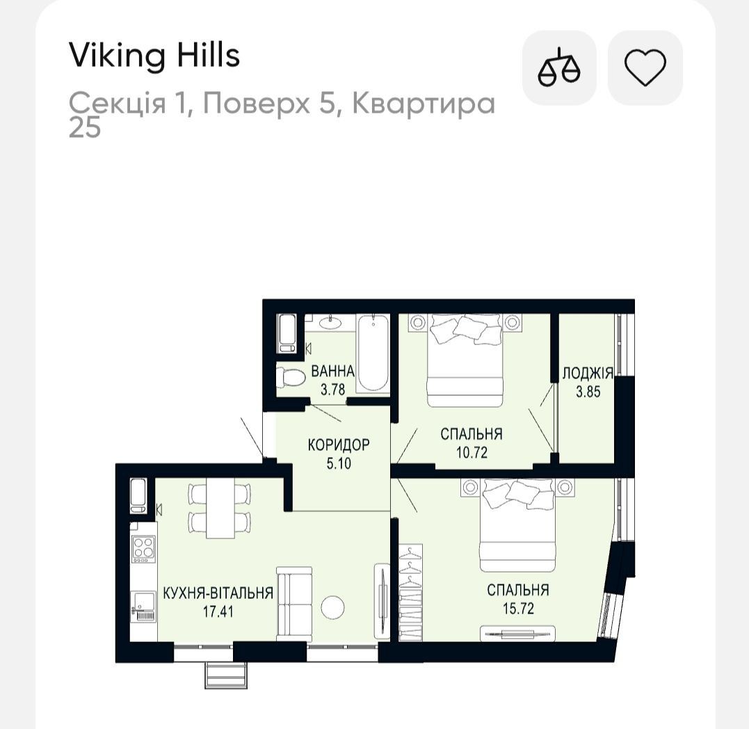 Продаж 2 кімнатної квартири у ЖК Viking Hills,ТЕРМІНОВИЙ ПРОДАЖ!
