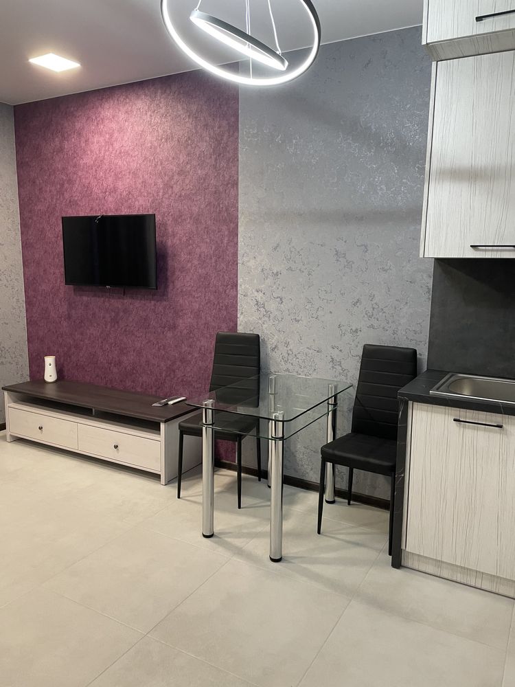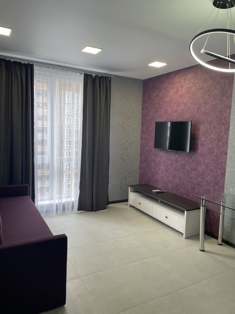 Здається смарт квартира по вулиці Трускавецька ЖК Парус смарт. Квартира світла. В кімнаті диван, телевізор. Санвузол суміжний. Встановлена душова кабіна
