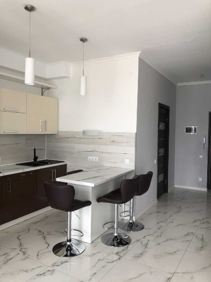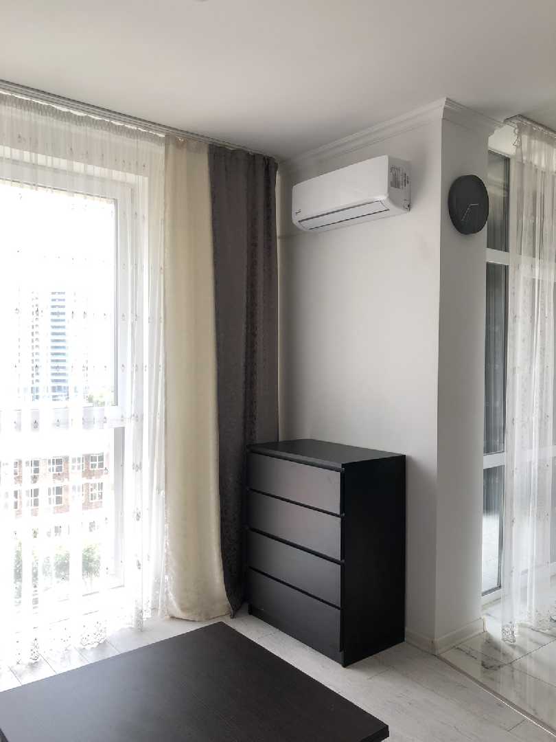 Оренда 1 км квартири в ЖК Авалон Гарден Квартира знаходиться в ЖК Авалон Гарден, має ізольвану терериторію, резервне живлення на випадок відключення світла (подача води та ліфти працюють). Квартира складається з просторої кухні студії розділеної на обідню та відпочинкову зону. Квартира забезпечена всім необхідним телевізор, кондиціонер, пральна машина, мікрохвильовка, холодильник, пилосос. Опалення в квартирі індивідуальне газове, присутній підігрів підлоги. Сунвузол суміжний, душова кабіна. За всіма деталями зза телефоном. Розглядаються орендарі на довготривалій основі, діти та тварини до розгляду. Ціна: 500$ + КП