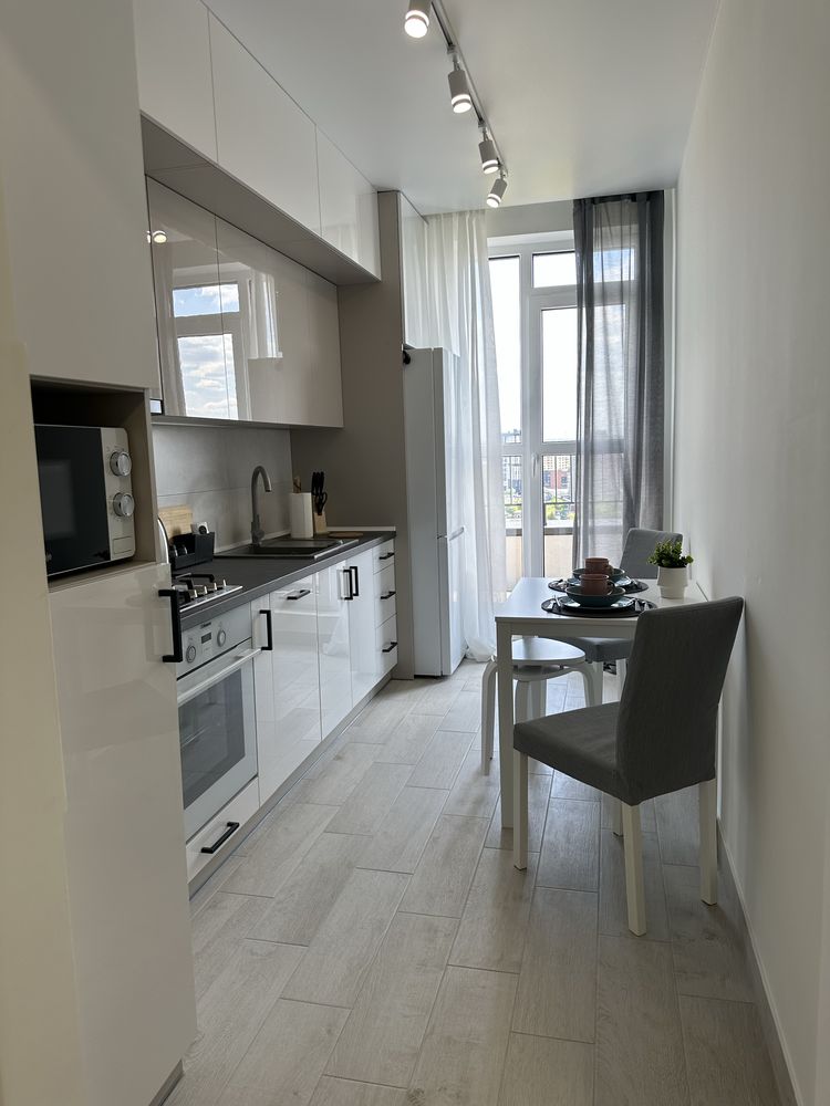 1- но кімнатна квартира з чудовим панорамним видом на Високий замок, центр Львова , проспект Чорновола: Вишуканий дизайн , в пастельних тонах, нова скандинавська мебель, цікаве інтерєрне оздоблення-все відповідає фото і навіть краще. Відмінна локація! Панорамні вікна в кімнаті та на кухні , вихід на великий балкон, де можна милуватись краєвидом вечірнього Львова. Квартира має всю необхідну абсолютно нову техніку - на гарантії! В кімнаті використані штори день-ніч, що не пропускають сонячне проміння. Комфортний сон, Вам створить ліжко з ортопедичним матрацом середньої жорсткості, TV плазма з інтернетом та WIFI . Квартира з південої сторони, що робить іі світлою і теплою, індивідуальне опалення, в квартирі для більшого комфорту є кондиціонер. На кухні - столовий стіл розкладний , 2 стільці та є дві табуретки додатково, якщо до Вас завітають друзі. Є столові прибори, посуд, каструлі. Техніка: холодильник, посудомийка, витяжка, мікрохвильовка, електро чайник, газова плита, двухфункційний газовий котел, ТВ плазма з інтернетом, кондиціонер, відео-домофон. Будинок ЖК Варшавська - бізнес класу , з власною територією та паркінгом, шлагбаум на пульті, домофон та відеонагляд.Тут безпечно та затишно, є укриття в підземному паркінгу. Відмінна локація - центр 10 хв, вся магістральна розвязка, поряд магазини, спортзали, салони краси, паркова зона, банк , аптека.
