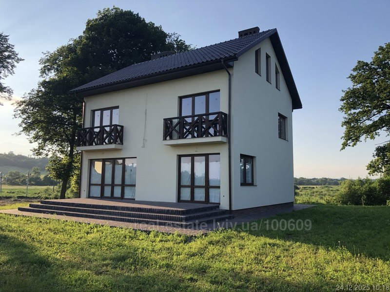с.Бродки, Стрийський напрямок, 22 км. від Львова продається двоповерховий будинок з мансардою ( 212 кв. м. загальна, 140 кв.м. житлова); наявні всі комунікації (електроенергія, газ, вода (криниця, свердловина), забезпечено водо- постачання і водо- відведення (каналізація); при будівництві використані виключно високоякісні матеріали, дотримані всі технологічні вимоги; перекриття залізобетонні, дах перекритий керамічною дахівкою (Австрія), стіни муровані товщиною в 2-і червоноі цегли; встановлено двох функційний котел (перший поверх - підлогове опалення, другий та мансарда - батареї), також встанвлено камін із панорамним фасадним вікном великої площі; будинок розташований у мальовничому місці, в пішій досяжності (50м.) розпочинається лісовий масив; будинок розміщено на ділянці площею 0,25 га ( призначення під забудову), яка межує з ділянкою площею 0,20 га (призначення осг), які разом формують єдину (вироблену та сплановану) рівну територію правильної форми, яка придатна для облаштування як відпочинкової зони, так і величезної ділянки для посадки саду (фруктових дерев); водночас, наявні грунти є ідеальними для посадки плантації лохини; також на території розміщений ставок із проточною водою (запитується з джерел, достатньо великий дебет води), дно якого викладено бетонними плитами, що робить його багатофункційним, а саме придатним для комфортного купання, а також розведення риби (ідеально для форелі); водночас, територія дозволяє облаштувати на березі лазню зі зрубу чи сауну; територія насаджена літніми дубами і липами, від яких в сонячну та спекотну погоду формується комфортна тінь.