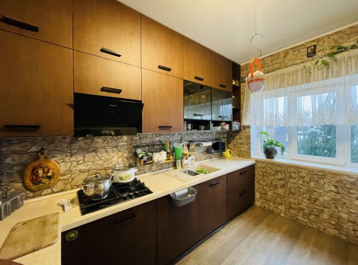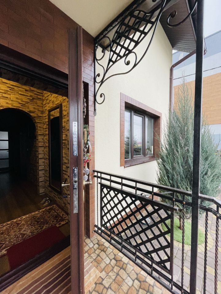 Продається новий будинок з гарними меблями. Чотири кімнати + кухня 15 м^2. У кімнатах паркетна дошка. Два санвузли. Два погріби, комора, два балкони. Гараж на дві машини. На подвір'ї бруківка і озеленення. Відеоспостереження.