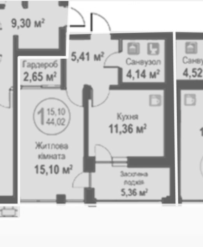 - 44 м²