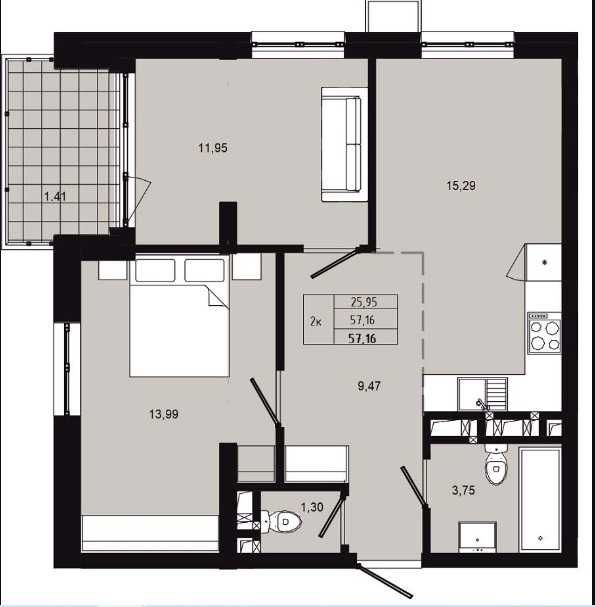 - 57 м²