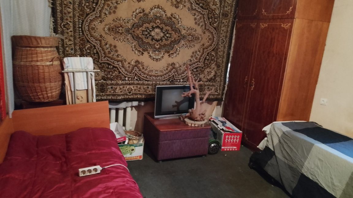 Кімната з двома спальними місцями. Якщо 2 людей-6000 грн на місяць, якщо одна людина - 5000. Хазяйка живе в прохідній кімнаті, опалює електричним конвектром. Є телевізор, інтернет, шафи. Три зимових місяці- газове опалення навпіл з хазяйкою