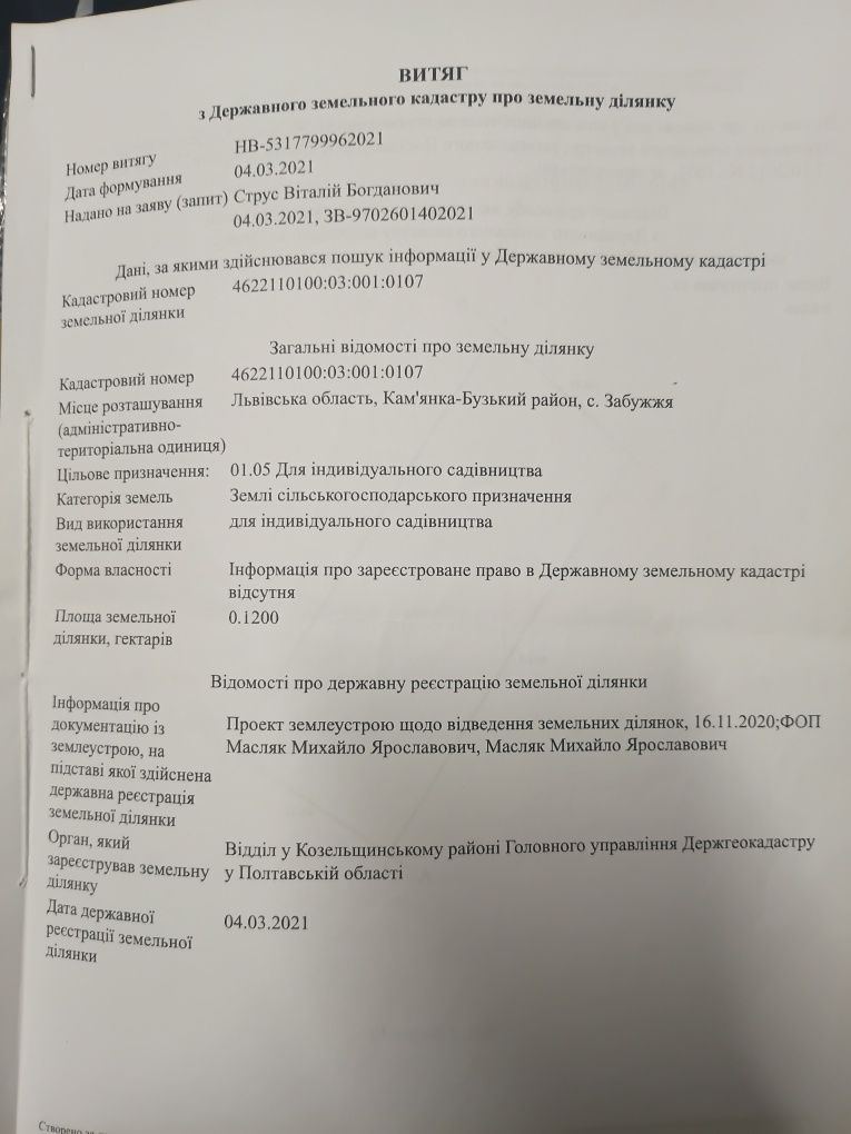 Продаж ділянки Забужжя