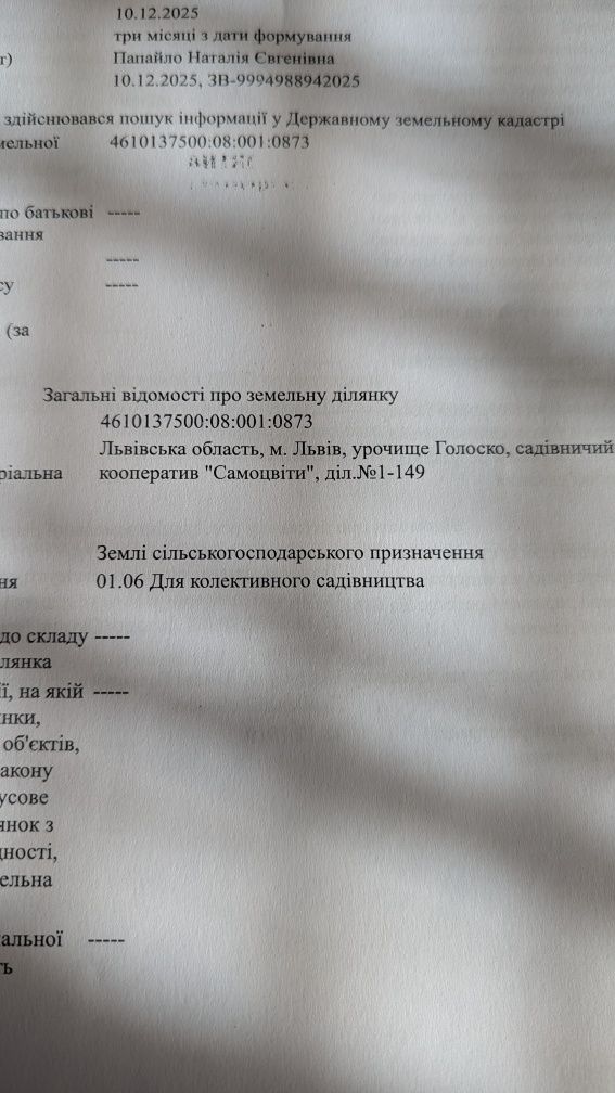 Продаж земельної ділянки. В Садівничому кооперативі «САМОЦВІТИ» Ділянка № 1-149. По вул. Довга. В дуже перспективному місці, м. Львова, 400 метрів від вул. Миколайчука (кінцева 46-го автобуса). Загальною площею 4,92 сотих Рівна ділянка, з чудовим розташуванням під будівництво. 15 хвилин від центру міста. По сусідній вулиці є світло і проведений газ. В майбутньому буде можливість підключення. Цільове призначення: Поки що садівництво. При якому оцінка складає 26000 гр. і діє до червня 2026 року. Подані документи на зміну цільового призначення: ОЖБ ( Обслуговування житлового будинку). Чекаємо на висновок архітектури... Деталі по телефону...